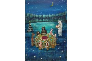 プーラビーダでの冬の個展、今年はロースィーツケーキ屋のハルライフスタイルさんとのコラボ展となります。ハルライフスタイルさんの作る美しく美味しいケーキから物語をイメージし、「聖夜の森のものがたり」というタイトルにしました。